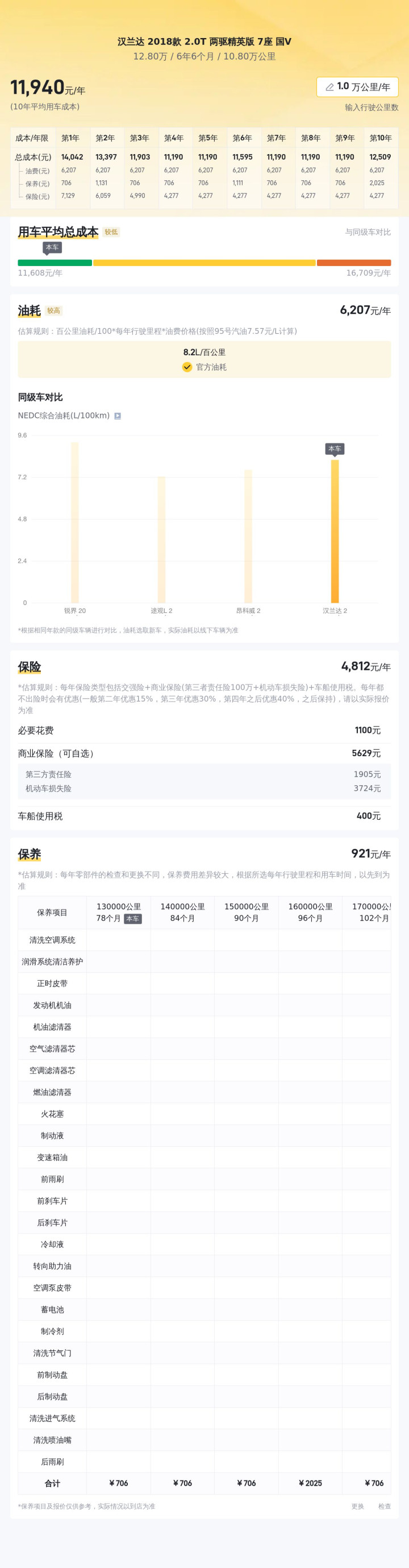根据懂车帝的大数据分析,汉兰达 2018款 2.0T 两驱精英版 7座 国V的10年平均用车成本大概是12346元/年,可以供您参考一下。